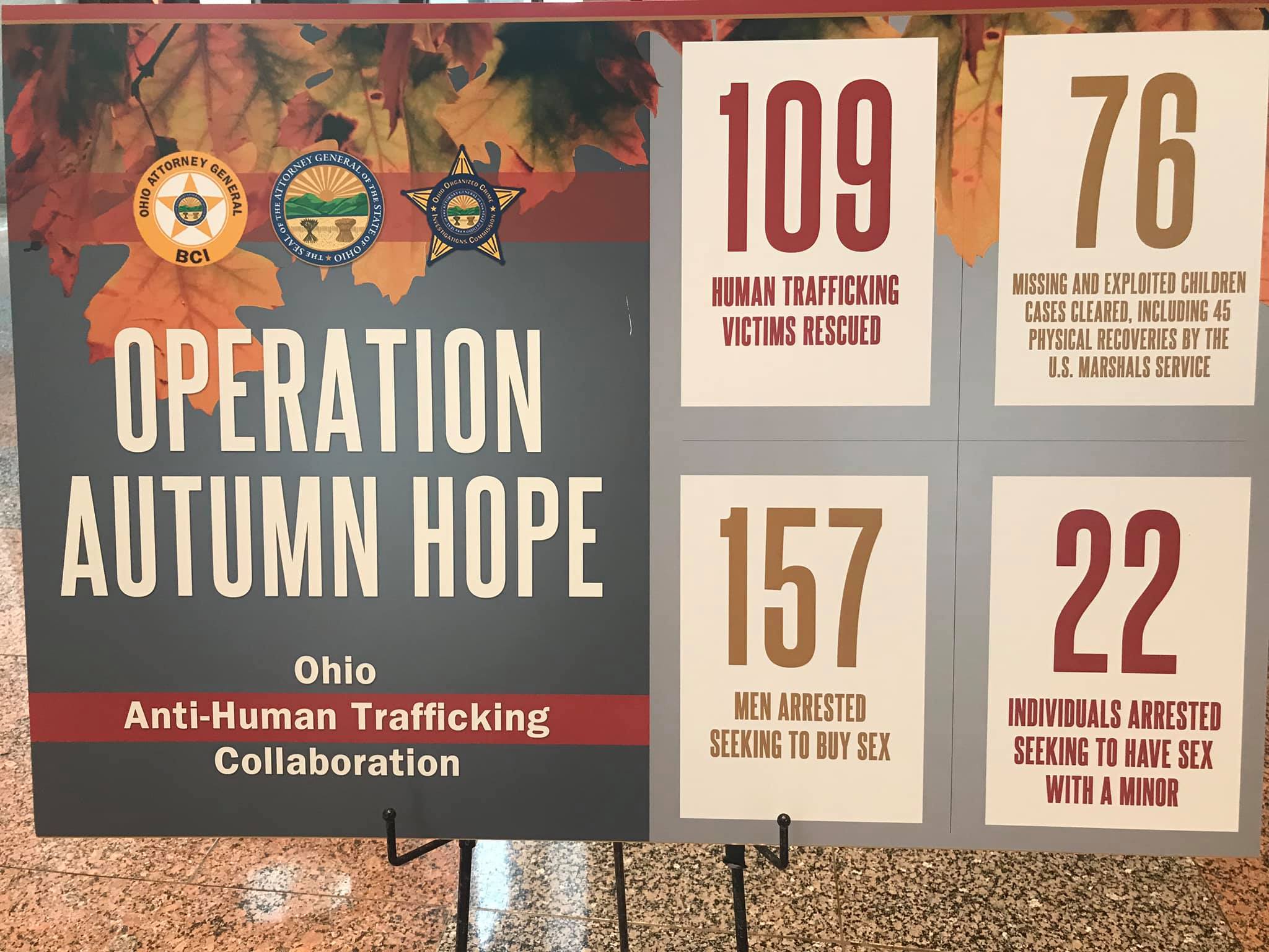 “The success of Operation Autumn Hope is measured not only in the number of arrests but in the lives that were rescued from this evil,” Yost said. “Every agency on this team looks for the day when no person is bought and sold in Ohio. Don’t buy sex in Ohio!”