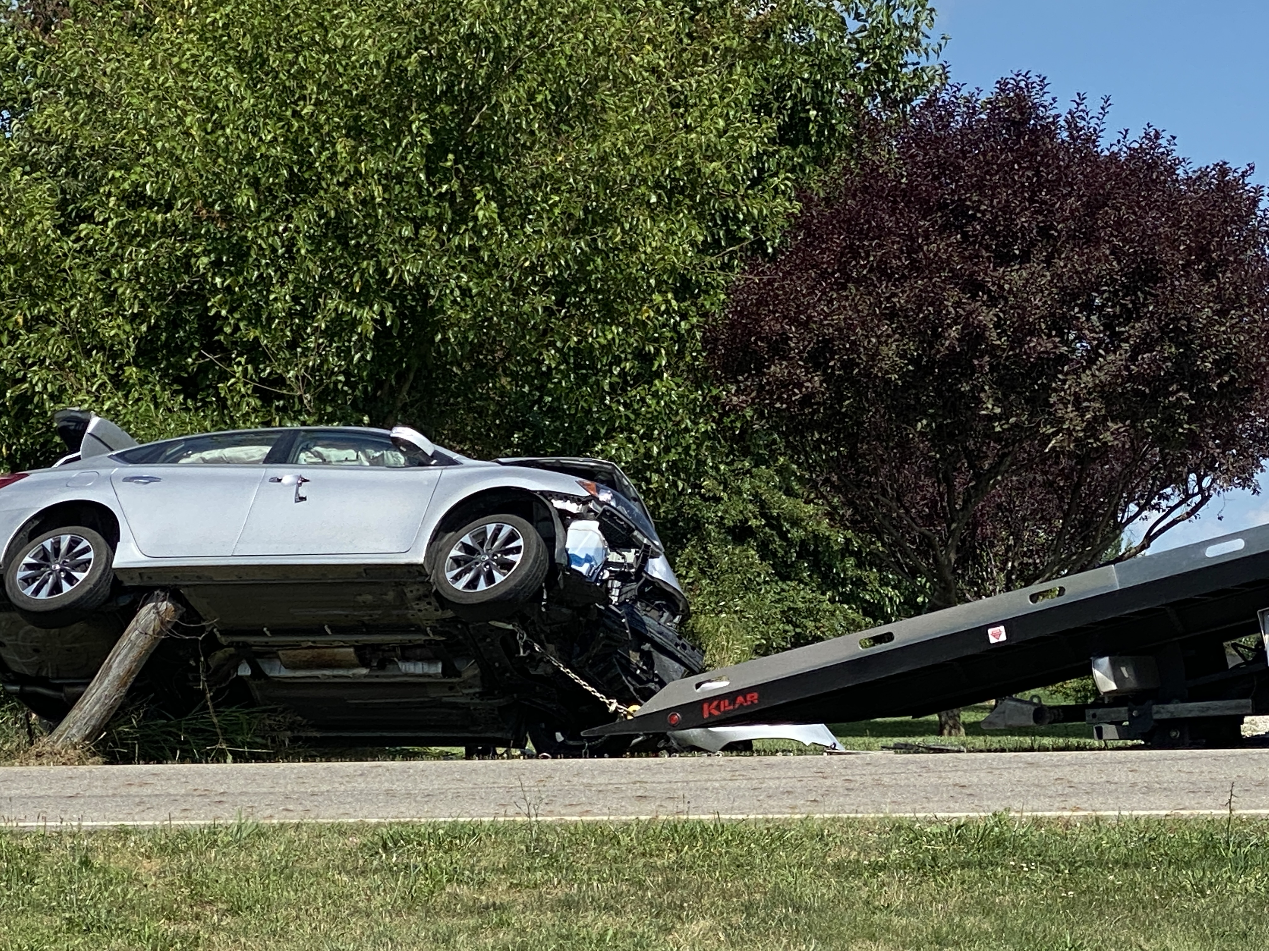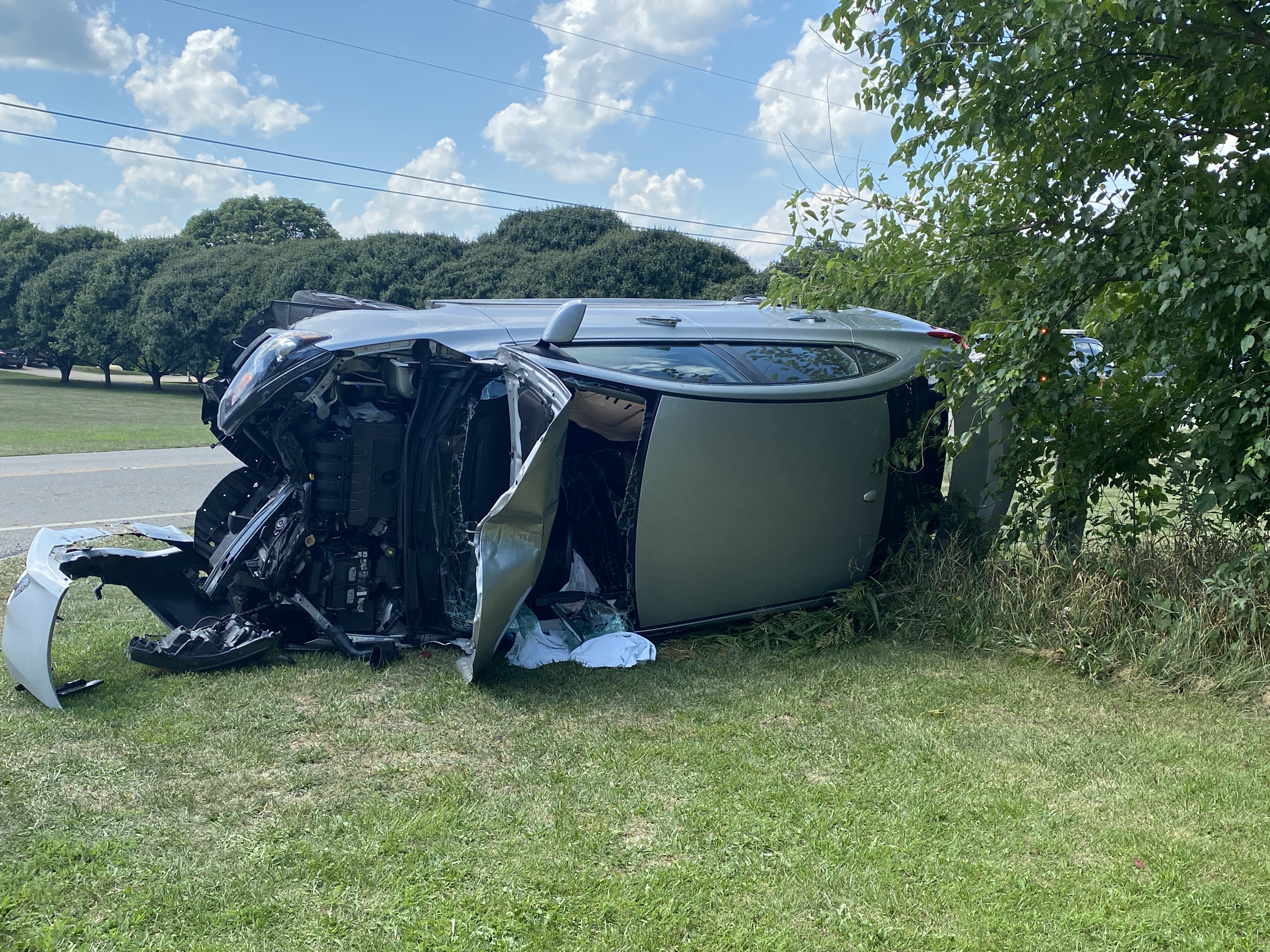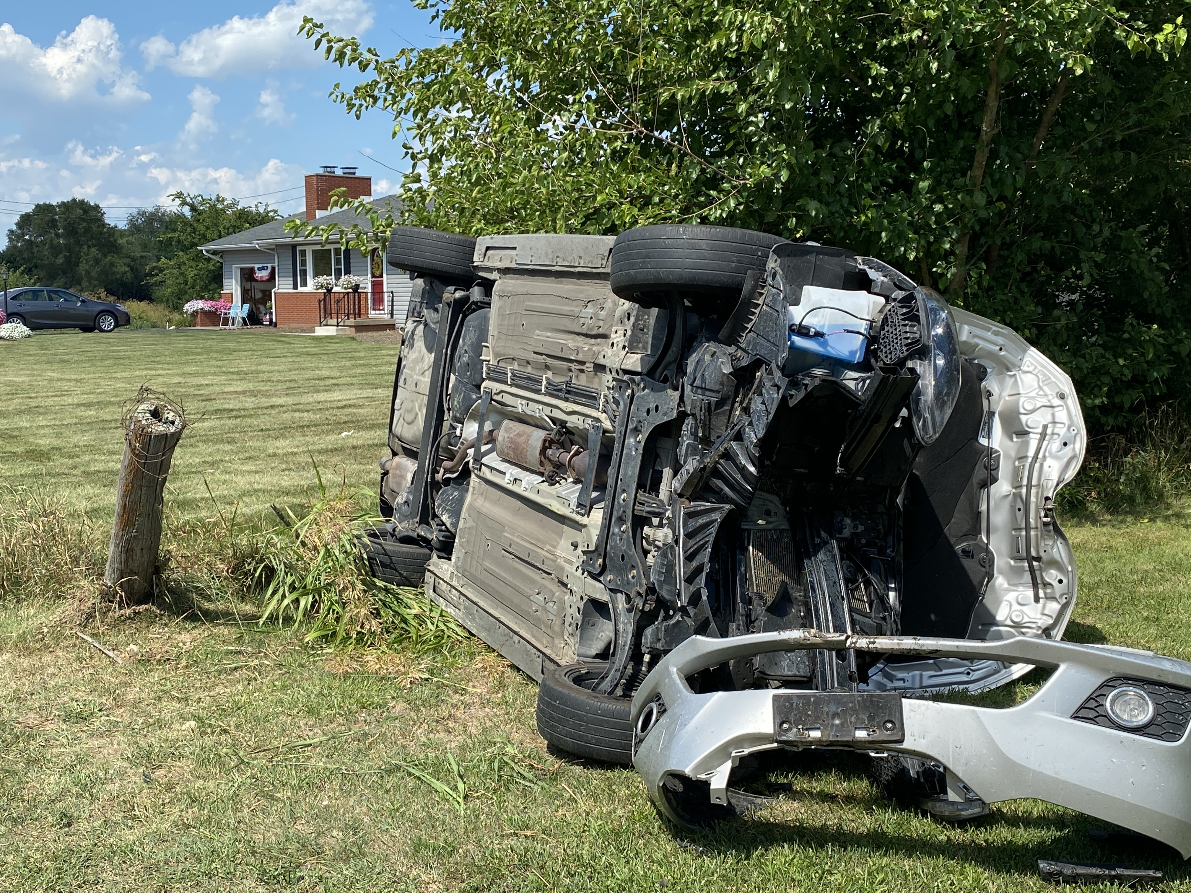 According to Pickaway Deputy on scene the driver of a silver Nissan Sentra was heading southbound on Walnut Creek Pike when the driver lost control of the vehicle hit a ditch then a old farm pole that overturned the car into the property located at 14028 Walnut Creek road.
