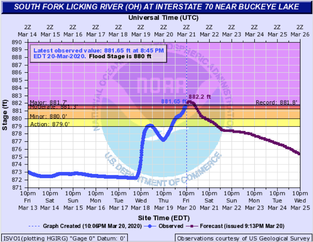 BUCKEYE LAKE – I-70 in the Buckeye lake area is impassible by cars at this time as waters from the Licking river overtake the interstate leaving police to detour the area.