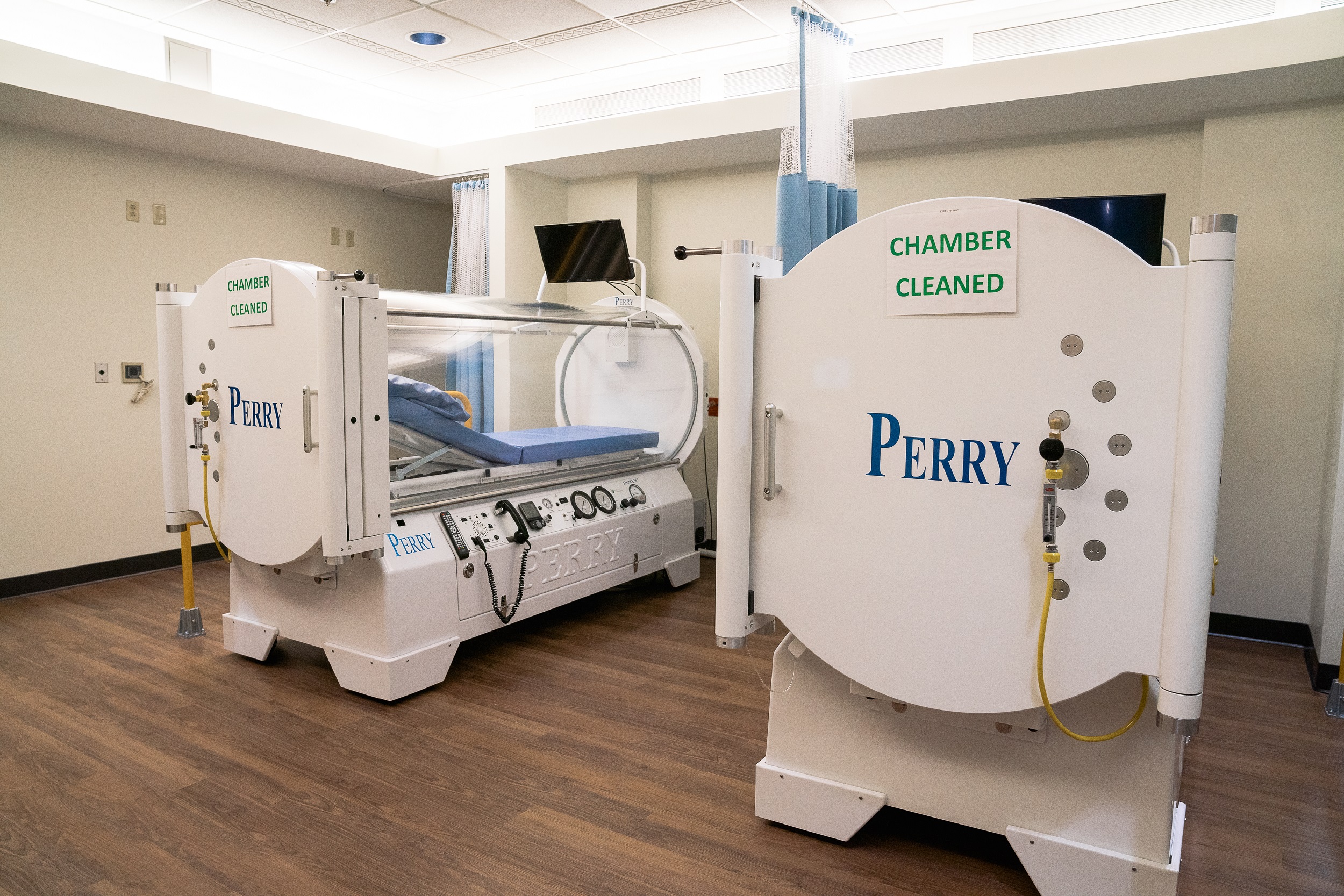 Oxygen is essential for wound healing. One of the reasons wounds can be slow to heal is due to a lack of oxygen at the wound site. When breathing under normal conditions, a person takes in about 21% oxygen. With HBOT, a patient breathes 100% oxygen while inside a clear, pressurized chamber. The chamber’s high-pressure environment helps to carry the increased amounts of oxygen throughout the body, accelerating wound healing.