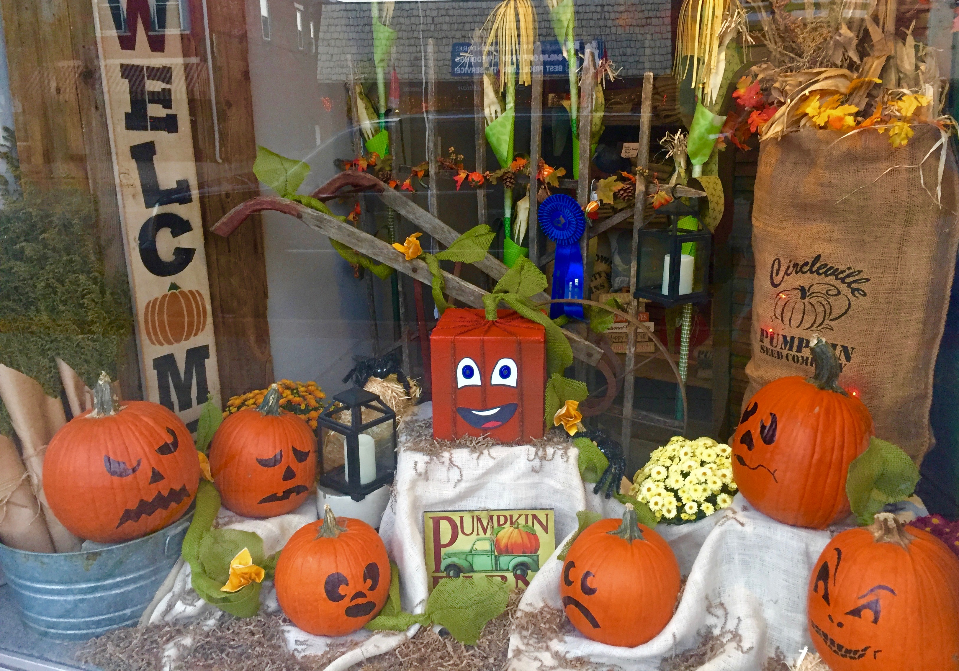 CIRCLEVILLE – Contest winners were picked in two categories one for service (see previous story) and one for retail. First, second, and third places were awarded in this category. The 2017 theme for the Window Trimming contest was “Favorite Movie or Cartoon that features a pumpkin.” All windows must include one live pumpkin to be considered. They could not use a professional trimmer. Prize money for first place is a hundred dollars, second place is seventy-five, and third is fifty.
