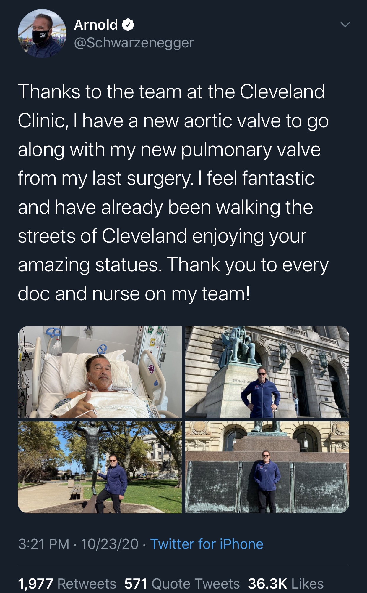 Schwarzenegger was worked on in the Cleveland clinic right here in Ohio!