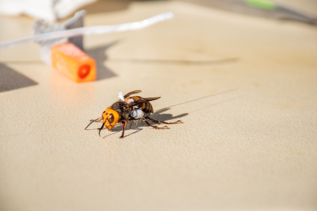 The entomologists were able to attach radio trackers to three hornets, the second of which lead them to the discovery of the nest, found about 4 p.m. on Oct. 22.