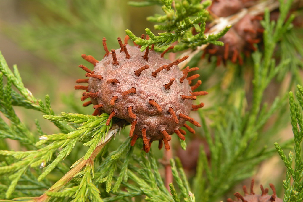 The fungus even takes on different appearances with each host but the most interesting is on redcedar where it takes on a almost flower like appearance.