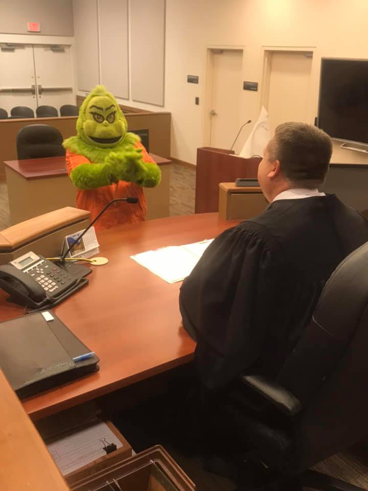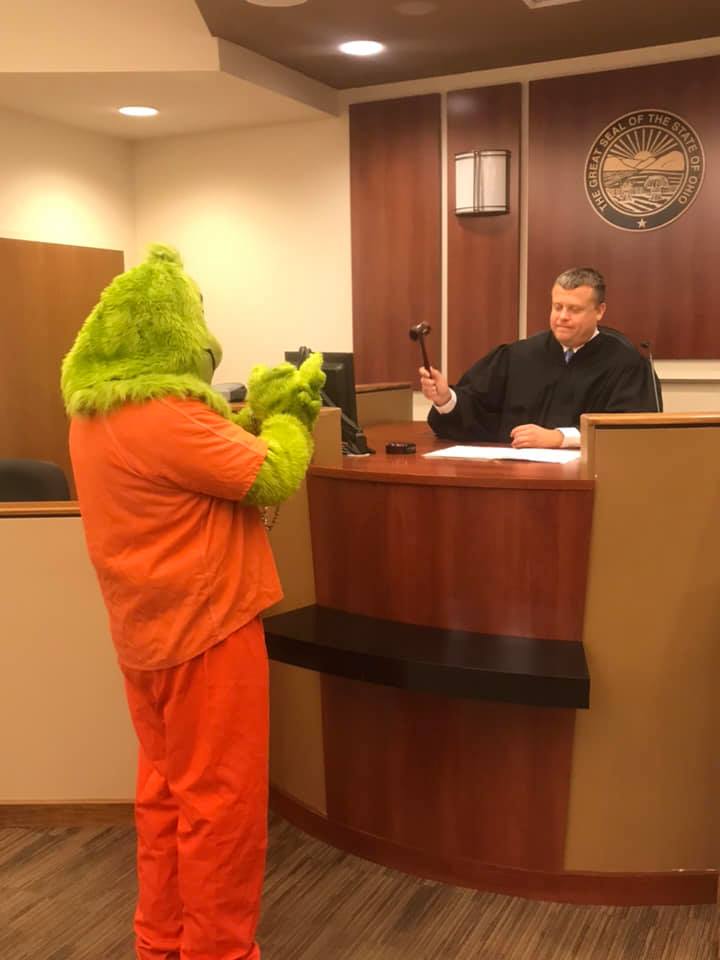 Sheriff Champlin states “I am happy to announce that due to the hard work of the Deputies of the Gallia County Sheriff’s Office, Christmas for everyone in Gallia County has been saved. Earlier today, the Grinch was taken into custody and, after consultation with Prosecuting Attorney Jason Holdren, has been arraigned on charges before the Honorable Judge Eric Mulford in Gallipolis Municipal Court.