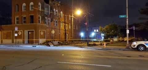 Police are on the scene and the area were the debris has been roped off for now, while they wait on a cleaning crew to come remove the wall debris.