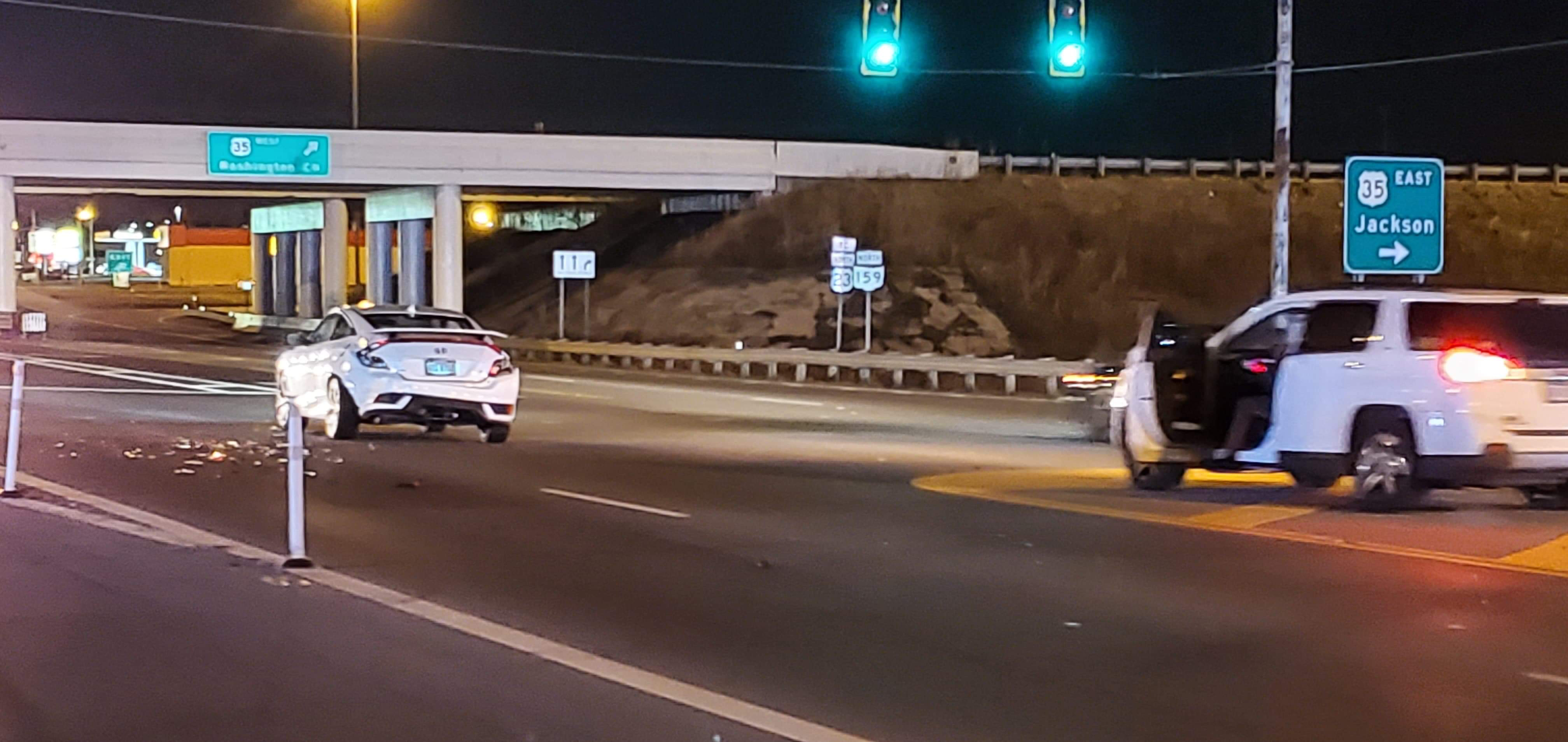 No one has been injured in the crash but one car is facing North in the South bound lane. This will cause some slowdowns.