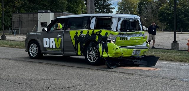 According to the Circleville Police department, the driver of the Ford Flex was driving eastbound on Lancaster Pike when they slowed down and was attempting to turn into the Sutherlands parking lot located at 460 Lancaster pike when a Black Ford Mustang failed to maintain a safe distance and rear-ended the vehicle.