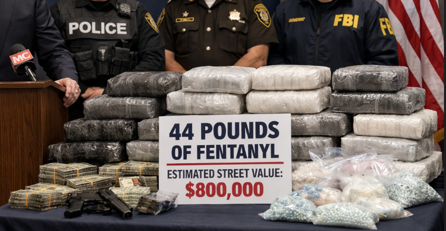 COLUMBUS, Ohio (Feb. 26, 2026) — One of the largest fentanyl seizures in the history of the Central Ohio Major Drug Interdiction Task Force took place this week in Madison County, with authorities confiscating 44 pounds of the deadly synthetic opioid.
