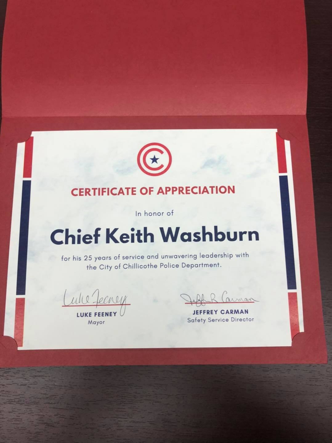 Chillicothe – Police Chief Keith Washburn retires today after 25 years of service to the Chillicothe community.