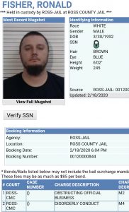Apparently, officers at the Ross County jail didn’t appreciate the wide smile on Mr. Fishers face during his first mugshot appearance below and made him take a new one.