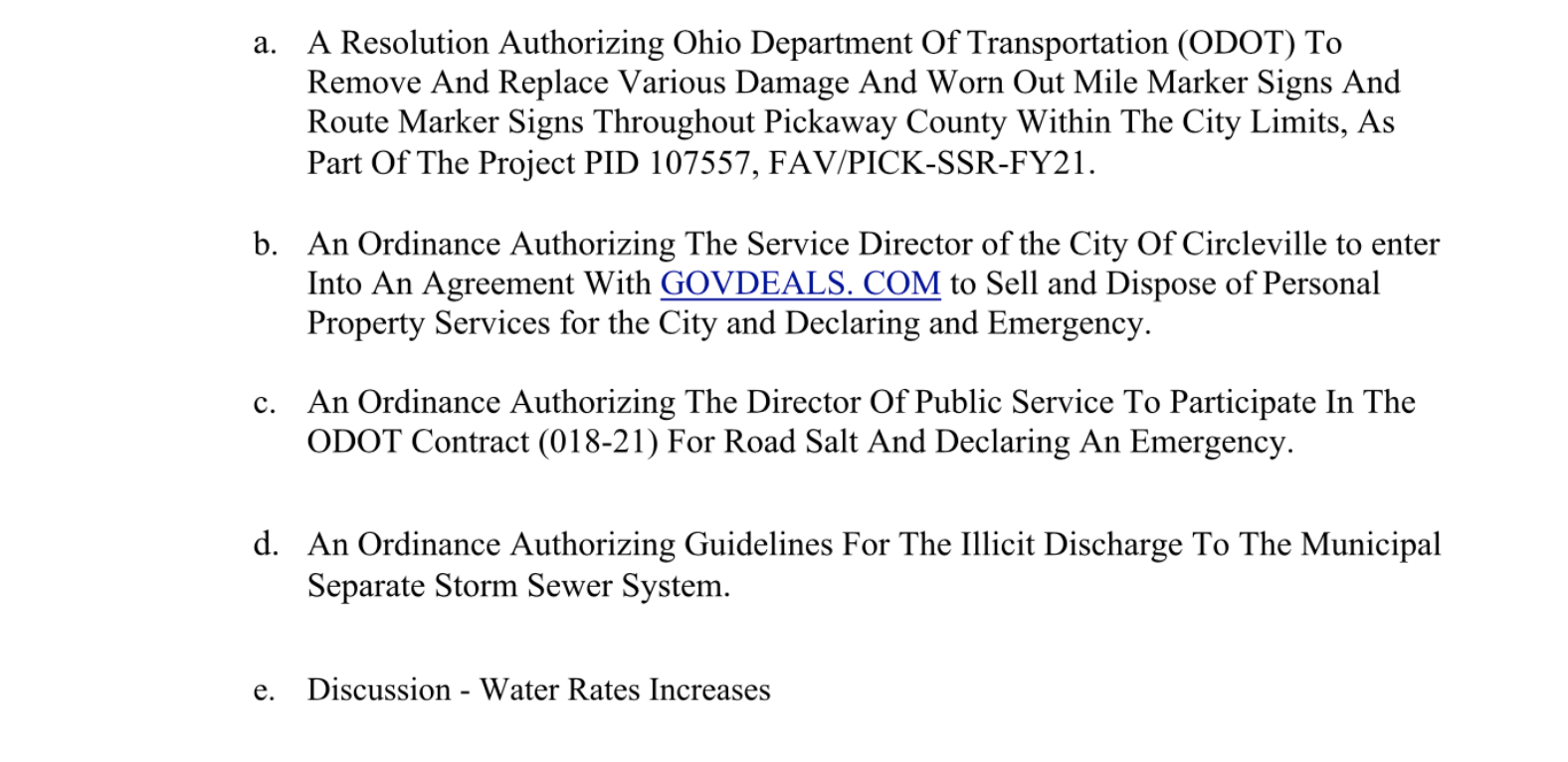 At 6pm the Public Serivce and Utility committee meeting will come to order and discuss ordinances/resolutions and updates from service director Terry Frazier after discussion of the below issues they will discuss and old or new business.