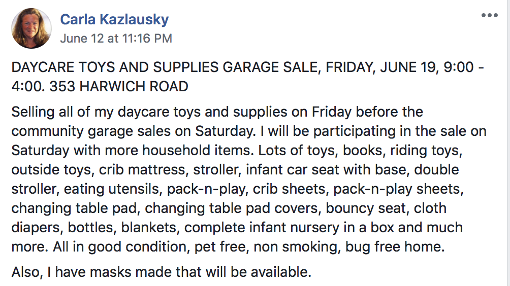 The entire development located of Walnut creek pike will be participating in the yard sale event, so great the kids and a mini van to come out to all the incredible savings.