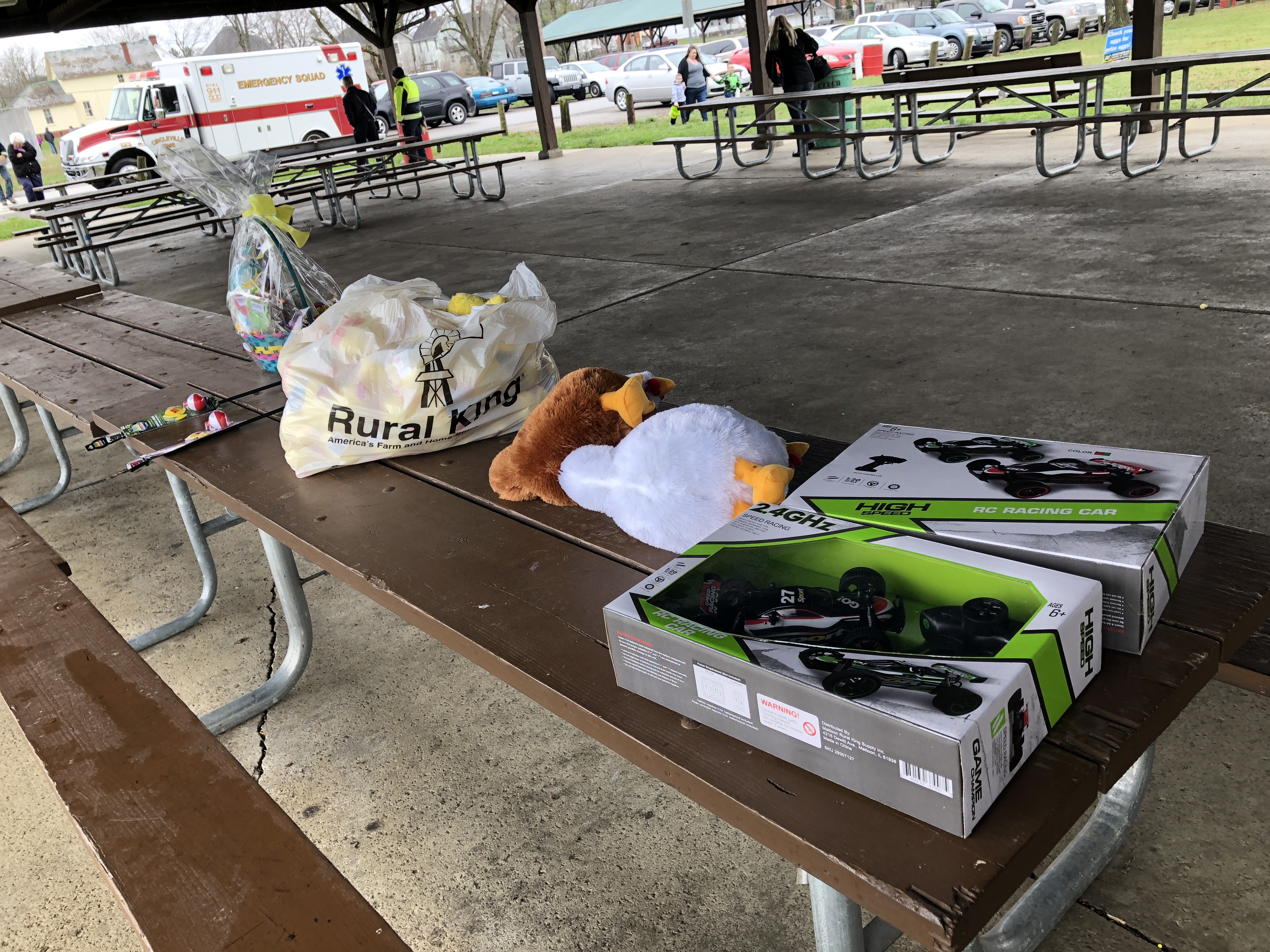 CIRCLEVILLE – Around 11:00 am today March 30, 2018 hundreds of kids ages 0-12 lined up behind lines prepared to capture a bag full of the 7,000 eggs present. The fire department sounded the siren on the fire truck to start the egg race! The kids didn’t know it but they were also grabbing prizes with the candy filled eggs. It took the kids about 8 minutes to grab all 7,000 eggs.
