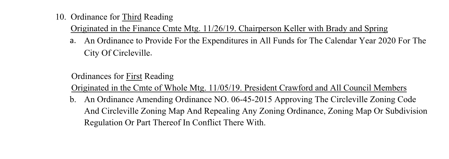 At 7 pm Circleville City Council will meet for a regular monthly meeting to discuss several ordinances.