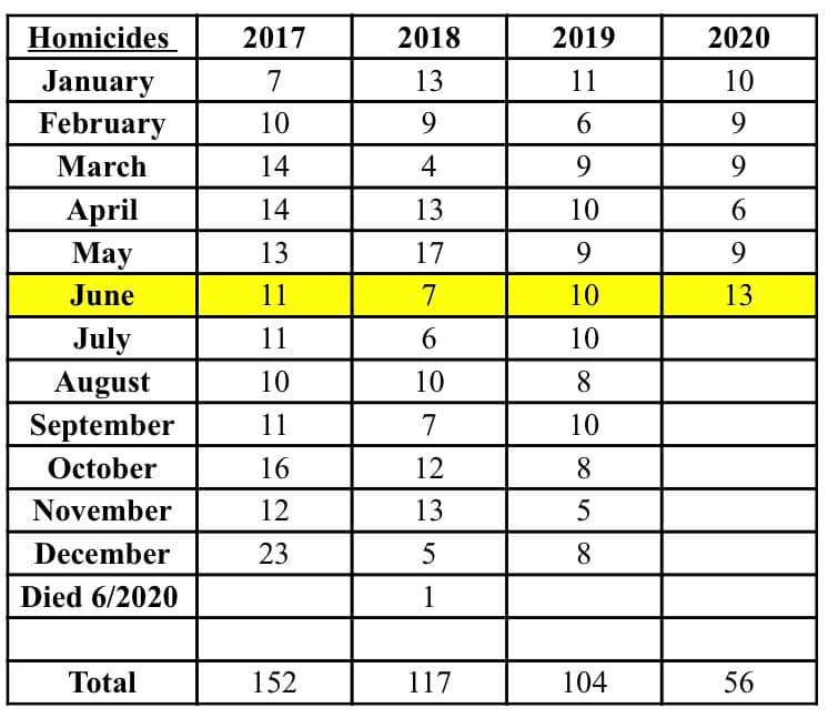 According to Columbus Police homicides are up 40% over last June and the month isn’t yet over. This is more than a 50% increase over the 3-year average.