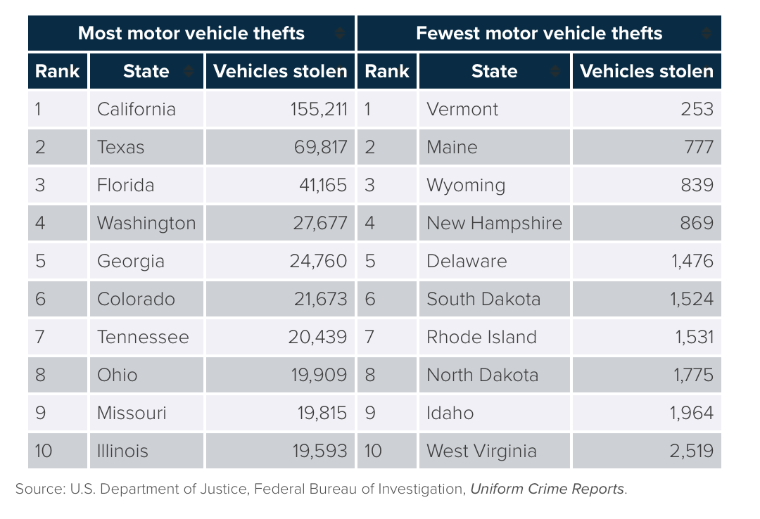 Ohio in 2018 according to the Federal Bureau of Investigation Ohio ranked 8 in the country of stolen cars at 19,909.