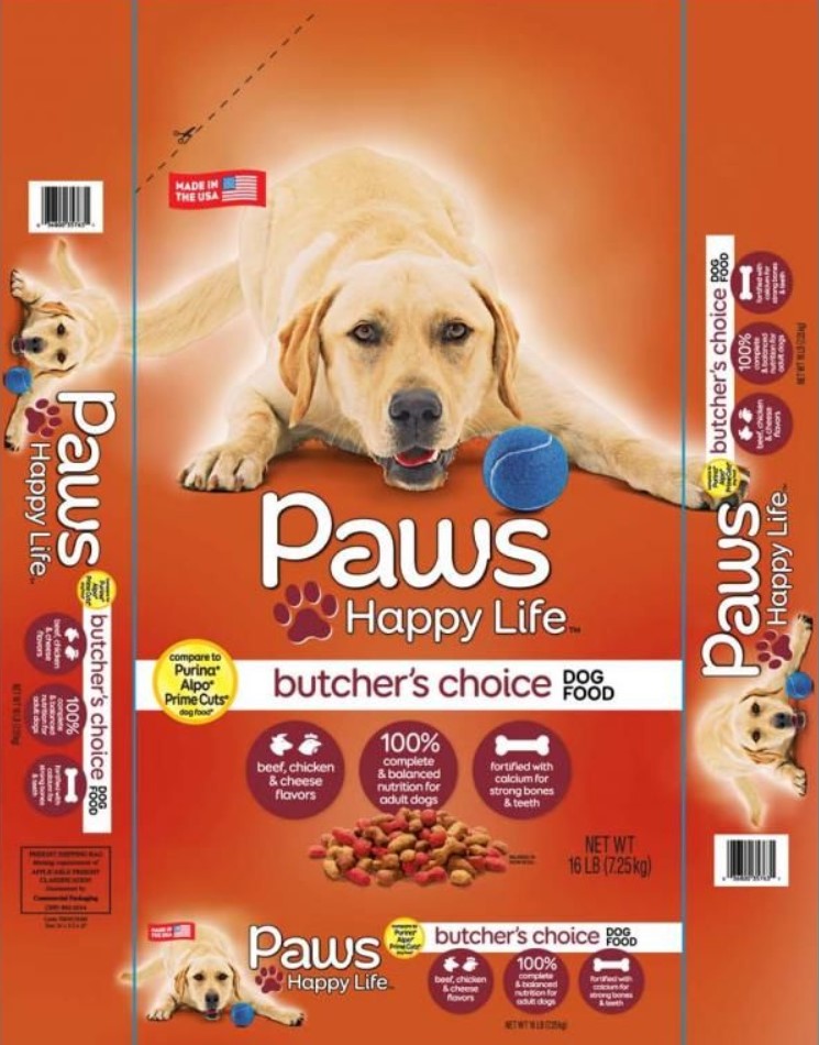 | PAWS HAPPY LIFE® BUTCHER’S CHOICE DOG FOOD | 16 lb. | TA1 4/APRIL/2020 TA2 4/APRIL/2020 |