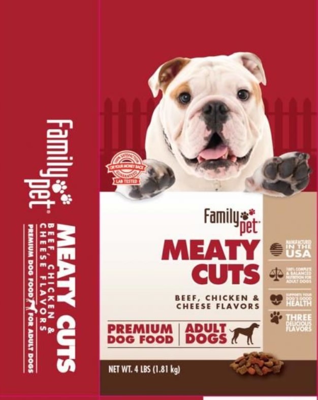 | FAMILY PET® MEATY CUTS BEEF CHICKEN & CHEESE FLAVORS PREMIUM DOG FOOD | 4 lb. | TD3 4/APRIL/2020 TD1 5/APRIL/2020 |