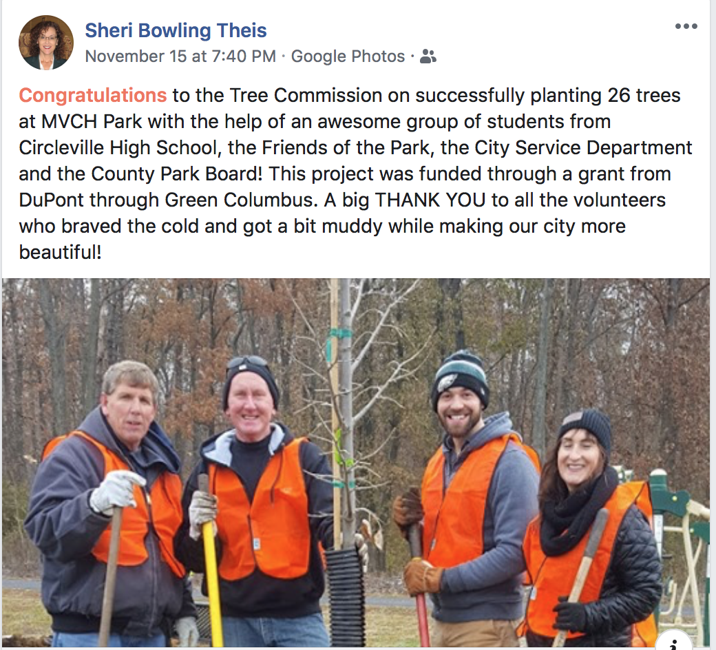 Circleville City Council Woman Sheri Theis attended the event and helped plant trees along with Councilman Barry Keller who also was representing Dupont