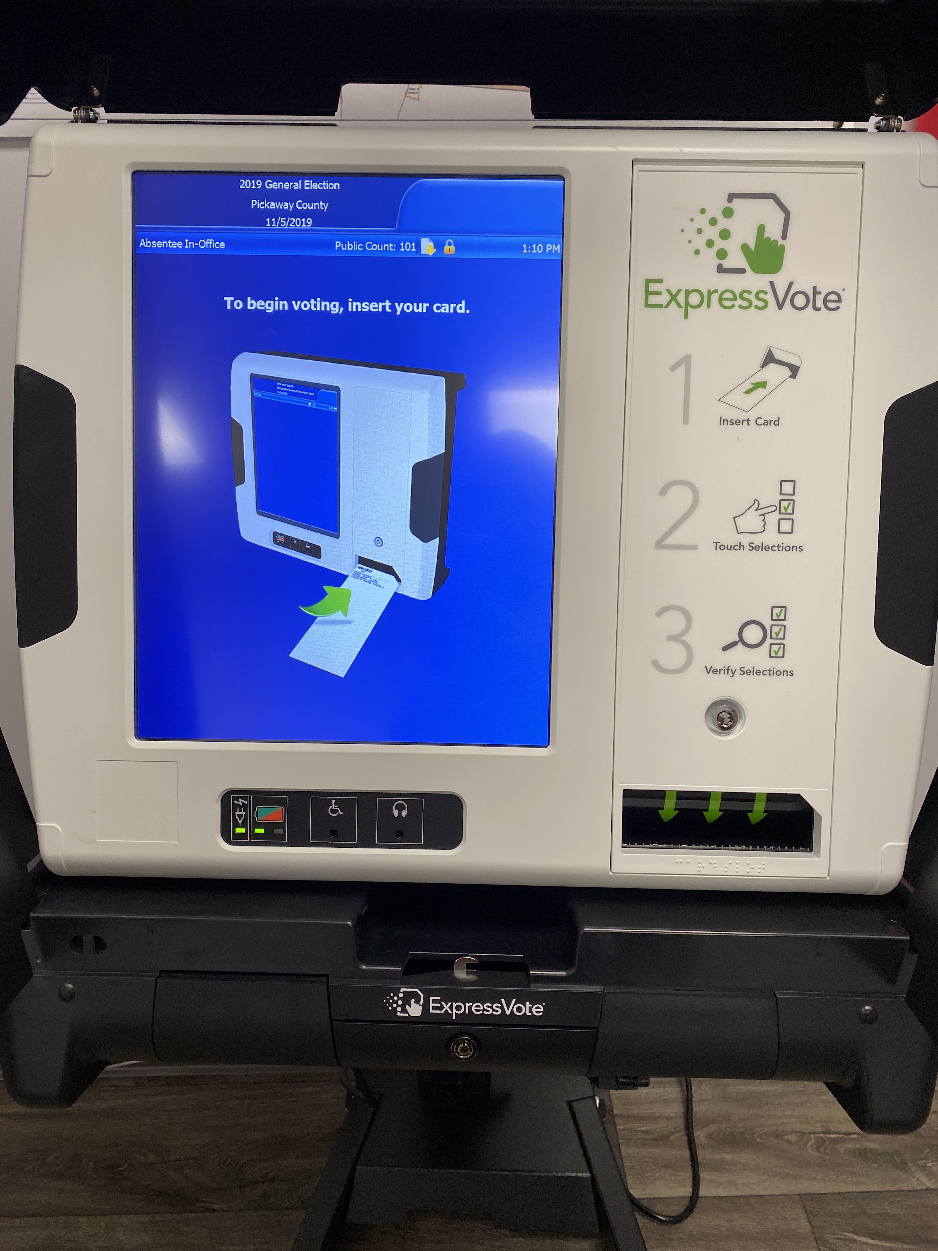 The system is easy also, address, name, and Id gets you started then from there the system is completely touch screen navigation through the system. The paper ballot is inserted into the machine and your choices are printed on it, you can even check your ballot before finishing to make sure your ballot is correct.