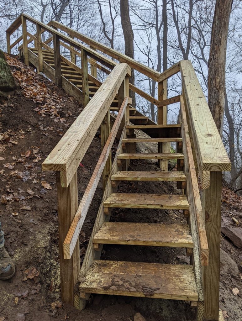 Caption: The finished staircase taking visitors on top of Allen Knob.