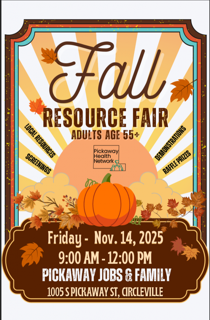 CIRCLEVILLE, OH — November 11, 2025 — Pickaway County Public Health, along with several local agencies, is inviting residents aged 55 and older to the Fall Resource Fair for Adults 55+, a free community event designed to connect older adults with local services, wellness opportunities, and helpful resources.