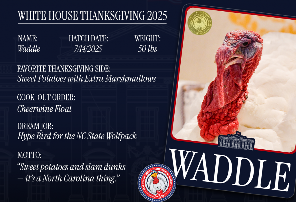 Following the ceremony, “Gobble” and “Waddle” will return to North Carolina, where they will live at North Carolina State University’s Prestage Department of Poultry Science. There, the turkeys will receive dedicated care, veterinary services, and serve as educational ambassadors for the state’s turkey industry and animal agriculture programs.