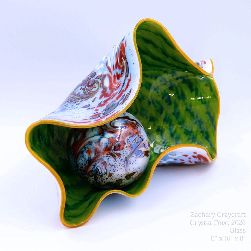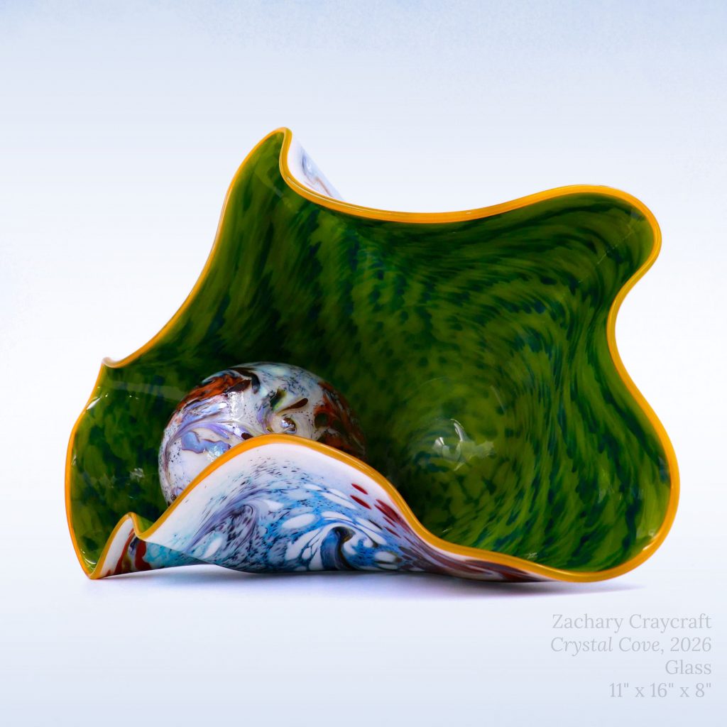 Known for a style that captures the “chaotic, yet soothing” nature of molten glass, Craycraft is using this momentum to transition away from traditional production-style pieces like pumpkins and vases toward more abstract, thought-provoking forms. His goal for 2026 is to push the boundaries of color and texture, creating signature works that are “unmistakably mine”.
