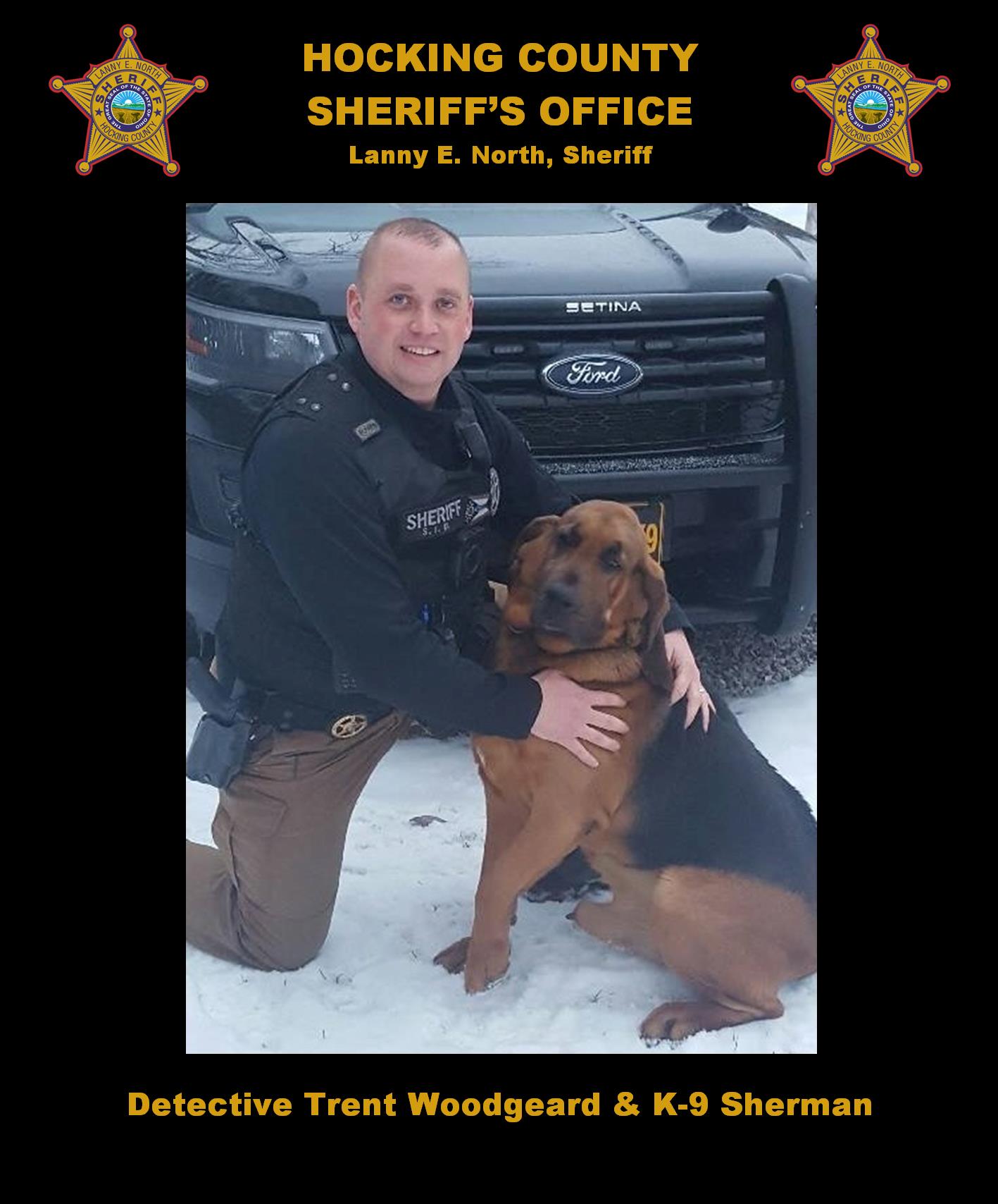 Sherman began his tour of duty and service to Hocking County in 2012 after Detective Woodgeard and Washington County Sheriff’s Office Deputy Keelan McLeish trained him for his certification.