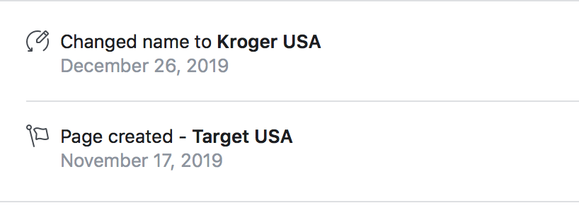 More research into the page shows that the page recently changed their name from Target USA to Kroger USA.