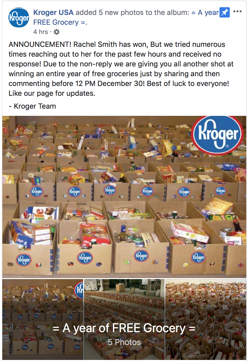 The post is from a company called “Kroger-dot-com”
