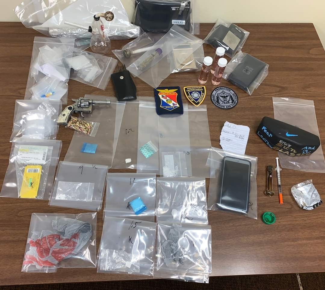While at 540 East Mound Street officers recovered 122 grams of Methamphetamine, 14.6 grams of Heroin, 3 grams of Cocaine, an unknown amount of admitted Fentanyl, a .22 caliber handgun, 4 digital scales, small plastic baggies, glass pipes, syringes, aluminum foil, and a small amount of Marijuana.