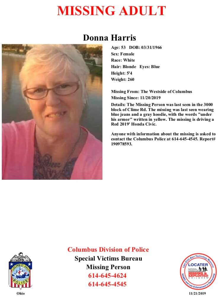 53-year-old Donna Harris is from the city’s west side. She was reported missing November 20, 2019.