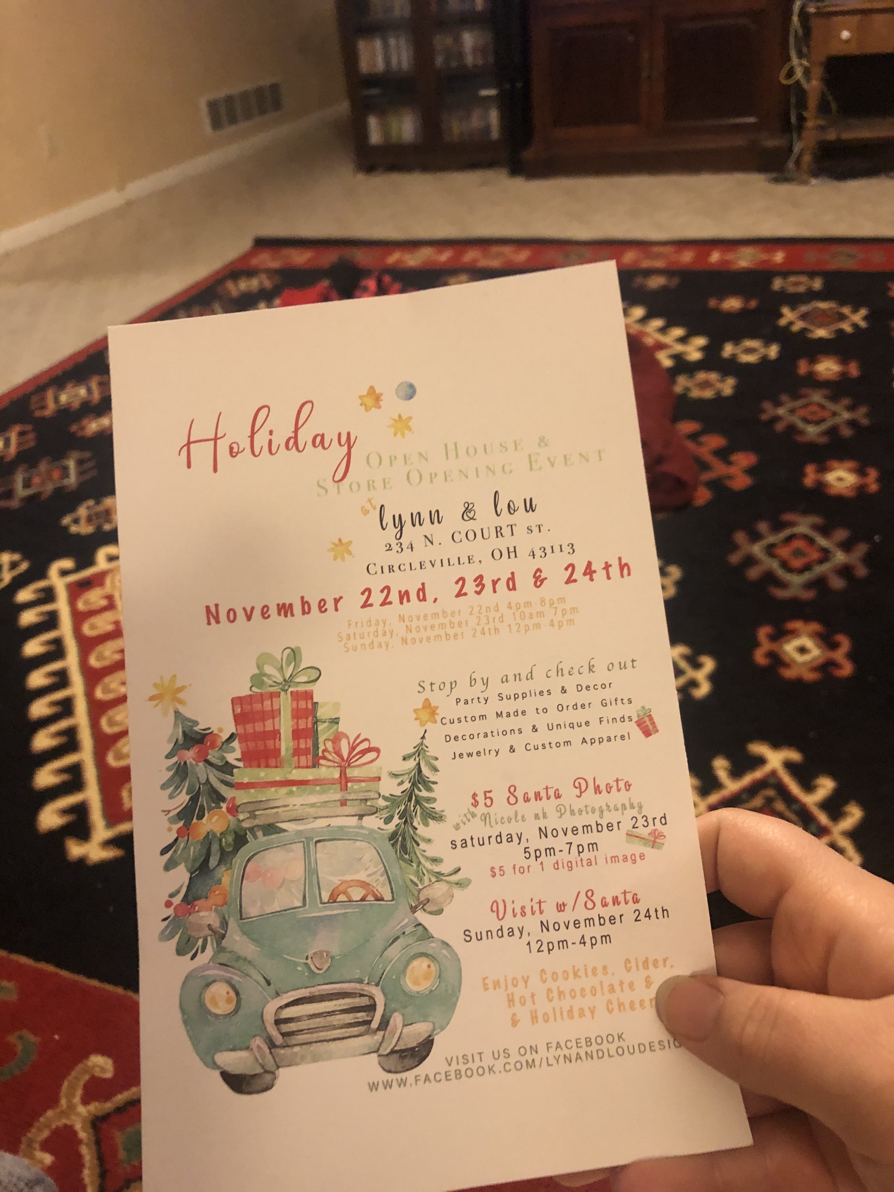 Located at 230 North Court Street in Downtown Circleville. This weekend Lynn & Lou will have a holiday open house and store opening event on November 22nd, 23rd, and 24th. More details on the invitation below. Visit the business facebook here: https://www.facebook.com/LynnAndLouDesigns/