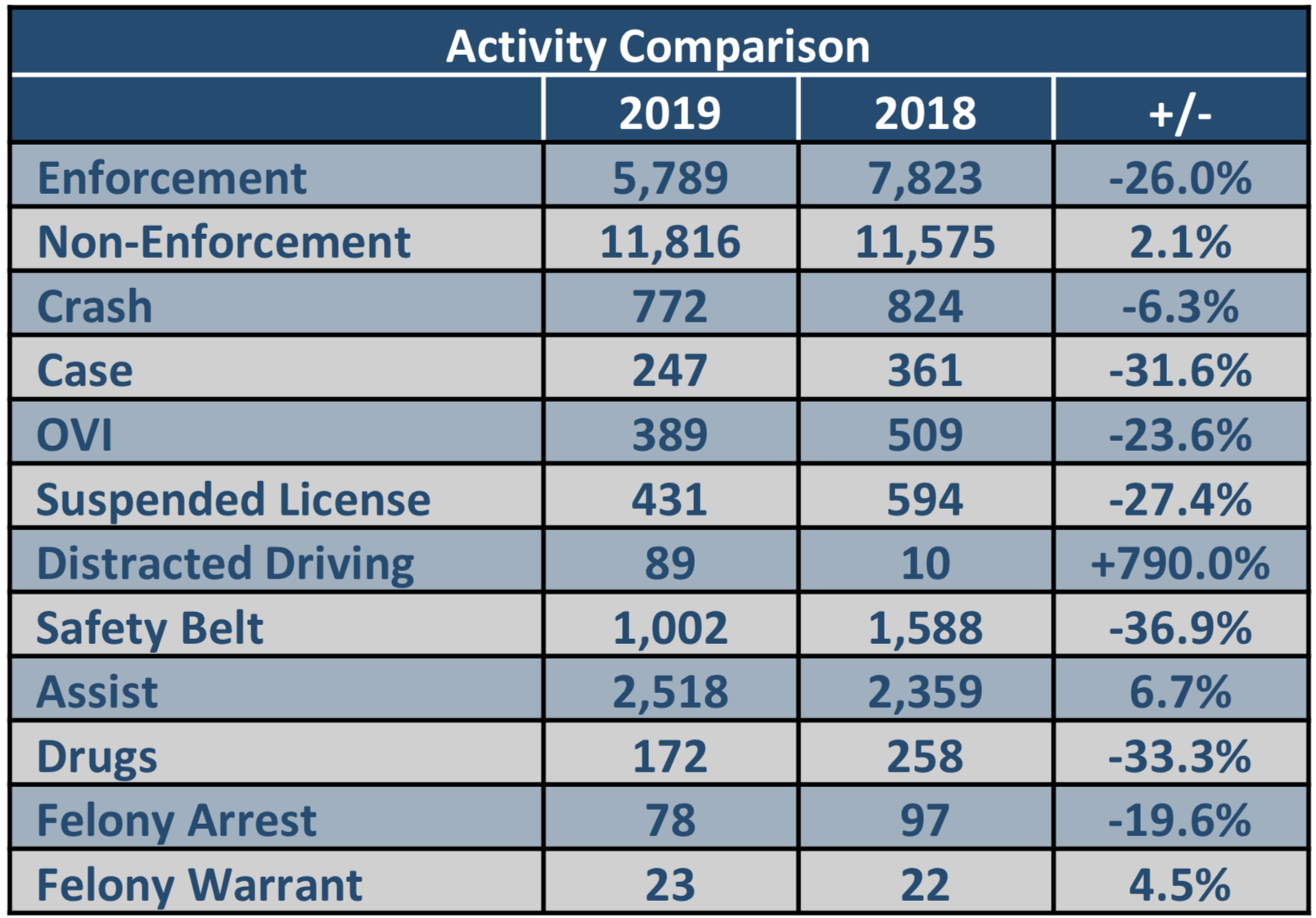 Troopers arrested 389 people for operating a vehicle while impaired and 172 for drugs. Troopers also issued 1,002 safety belt and 89 distracted driving violations. Throughout the holiday reporting period, troopers also assisted 2,518 motorists.