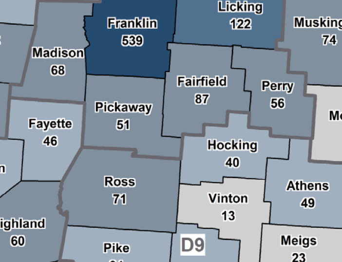 In years 2016-2018 Pickaway County had 51 fatal accidents, Ross county 71, and Hocking County had 40.