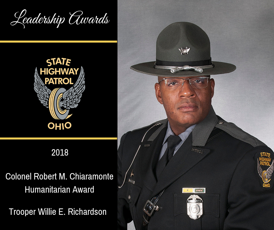 Trooper Willie E. Richardson, of the Bowling Green Post, was honored with the Robert M. Chiaramonte Humanitarian Award, which recognizes officers dedicated to humanitarian causes on the highway and in their communities.