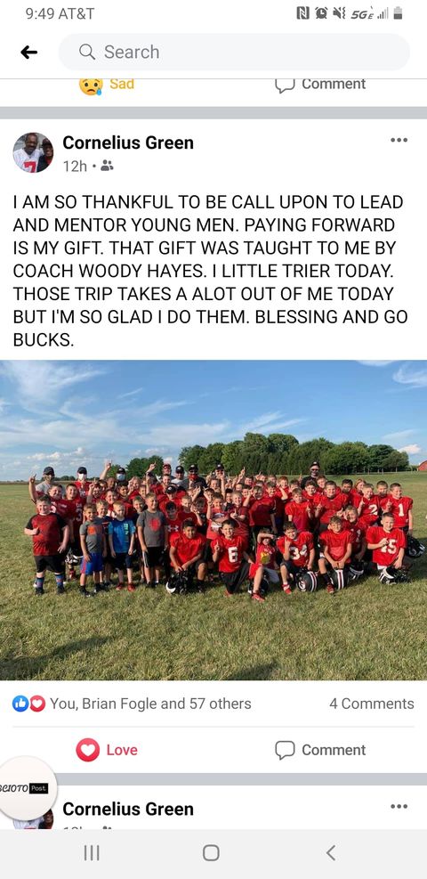 A few months ago Dustin Arledge President of Logan Elm Youth Football took a chance and invited Former Ohio State Quarterback Cornelius Green to visit Logan Elm youth football, but he never thought it would happen. Weeks later he was shocked when Ohio States First African American Quarterback messaged back and accepted the invitation. That meeting happened this week, and Arledge says he invited Green for very important reasons.