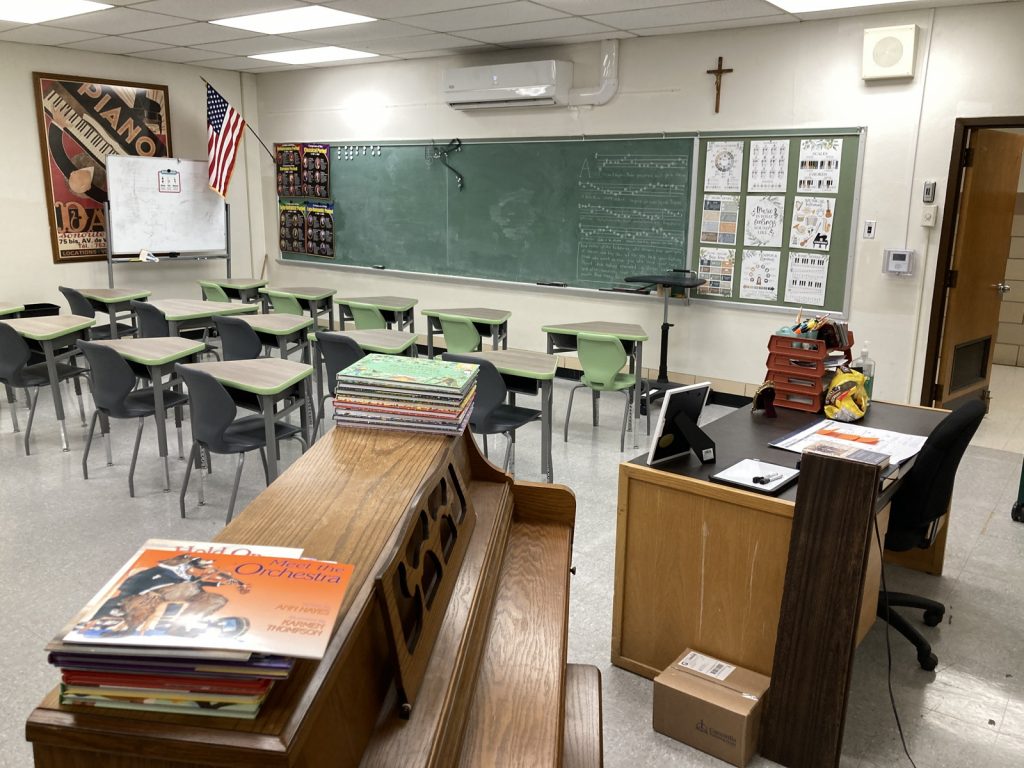 The halls of the school already have artwork peppered throughout, but Rix says she wants to bring in even more art. She also points out that Bishop Flaget has a full-fledged library, music room, and science room.
