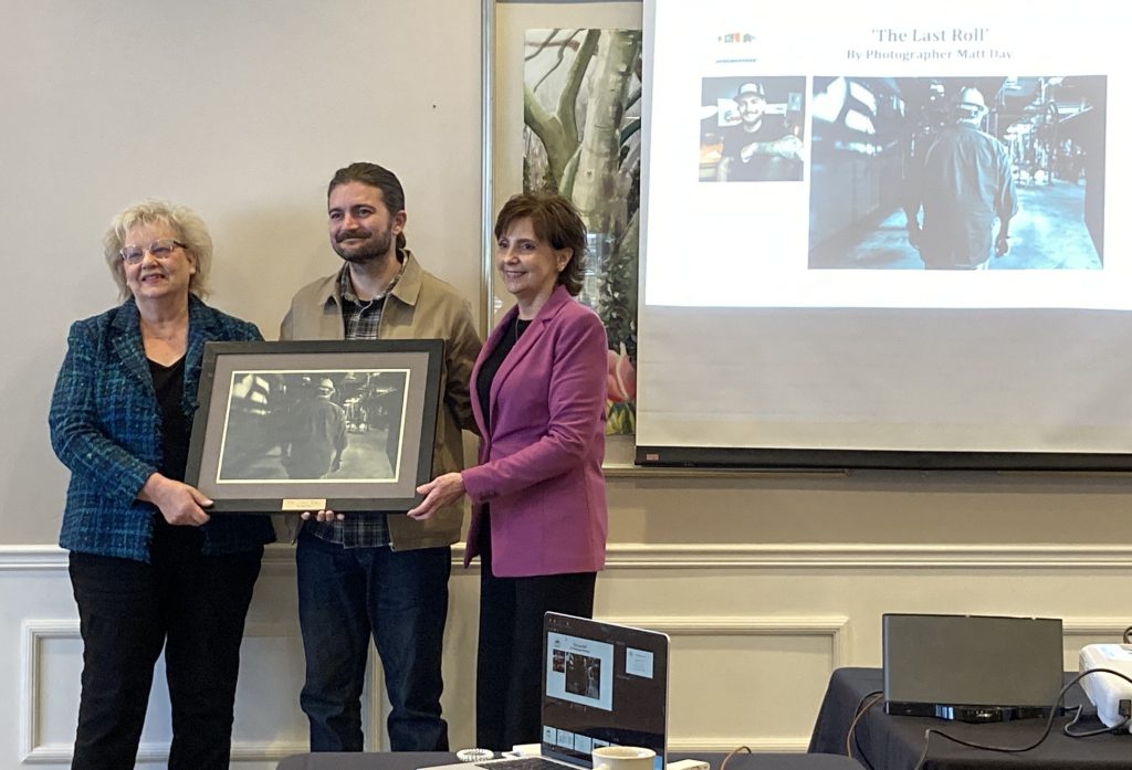Day said he also got some of the last roll of paper produced there, in Paper Machine No. 10. So he printed the photo “The Last Roll” on the paper – even though it was not the best medium. With a frame by local Dard Hunter Studios, the print was a gift to Susan Gearhart for her leadership in GCRCD.