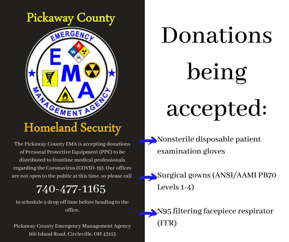 PICKAWAY – Pickaway Emergency management agency is asking for any leftover or stored Personal Protection Equipment.