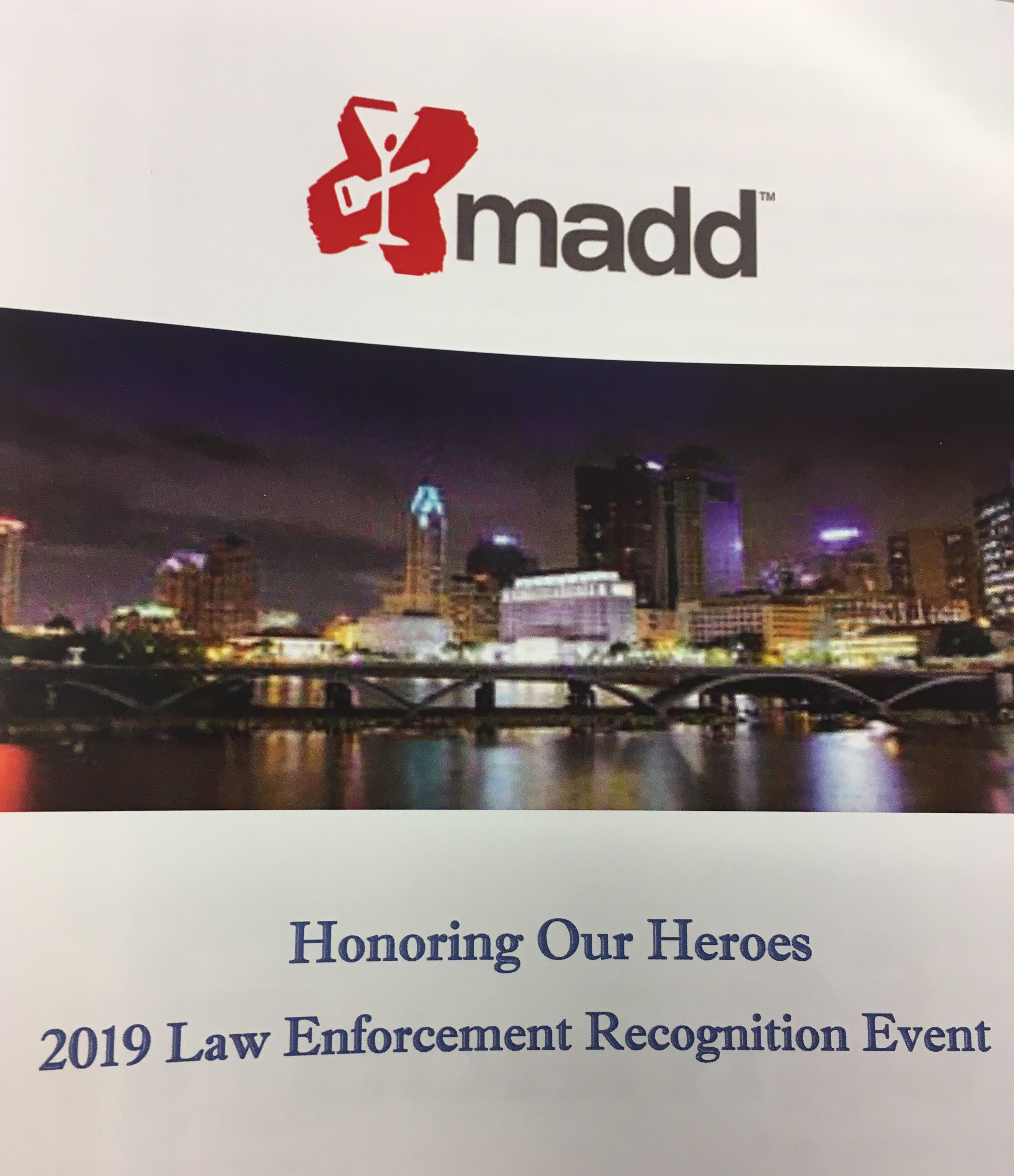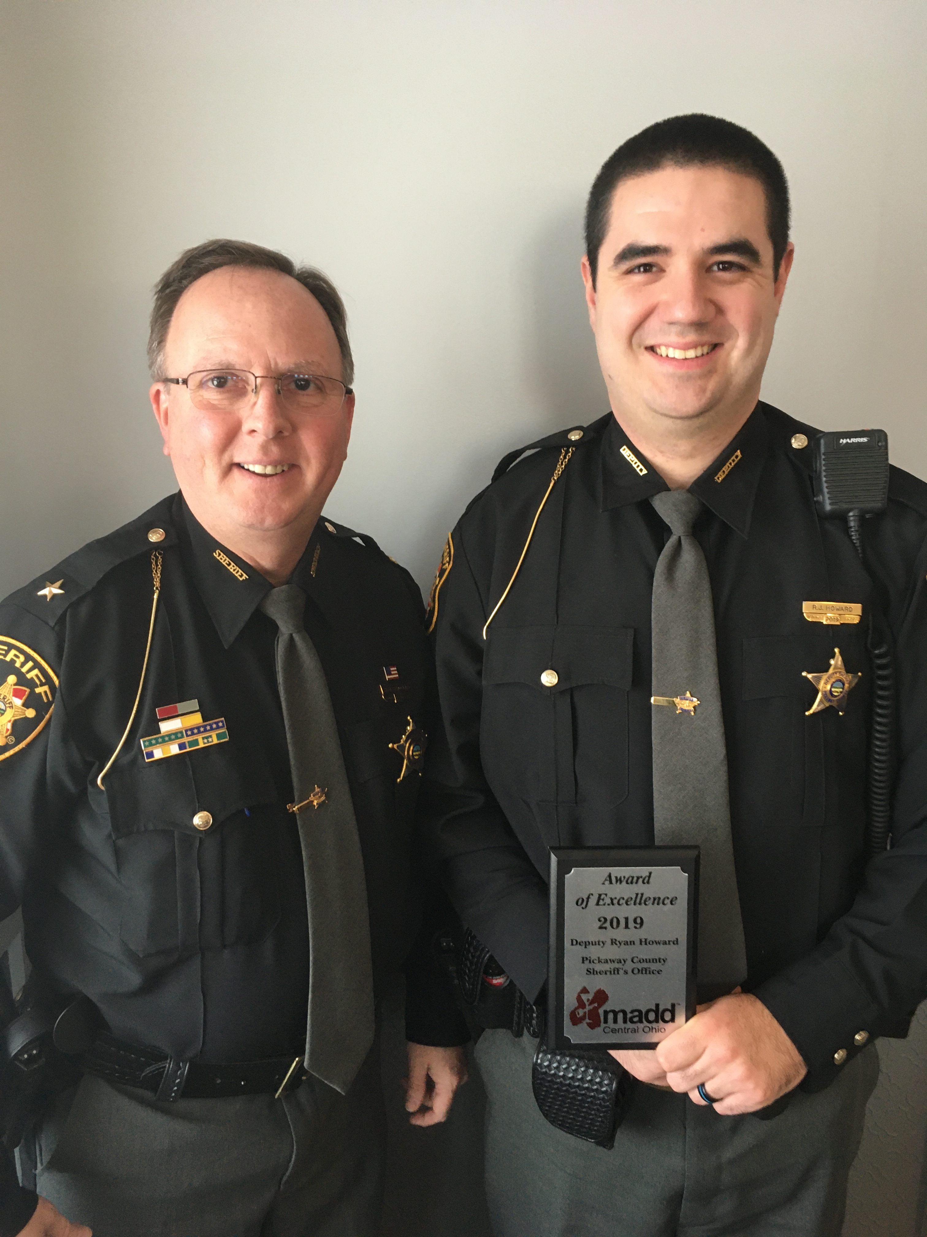 PICKAWAY – On December 12, 2019 Sheriff Radcliff had the honor of accompanying Deputy Ryan Howard to the 2019 MADD Central Ohio “Honoring our Heroes Awards of Excellence Luncheon” where the Ohio MADD office once again recognized central Ohio Deputies, Troopers and Police Officers for their efforts in reducing drunk driving deaths.