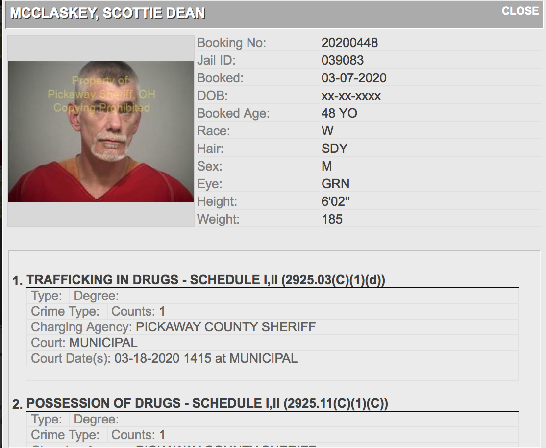 Both Linton and McClaskey were placed under arrest and taken to the Pickaway County Jail. They