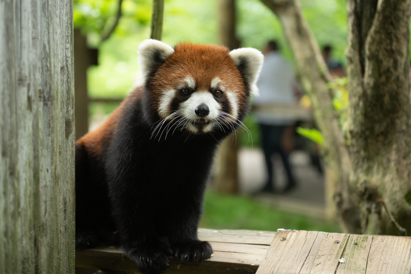 Red pandas are excellent climbers and live in trees. They use natural shelters like tree hollows to den and sleep during the day. As there were strong storms overnight, team members searched the habitat to determine whether any tree branches were bent or broken, leading to the public pathways. One area of branches slightly sagging due to rainwater was trimmed back as an added precaution to ensure that the male panda safely remains within the habitat. Footage from the den camera and security cameras located through the facility are being evaluated by staff, but so far, there have been no sightings or strong evidence of how she went missing.