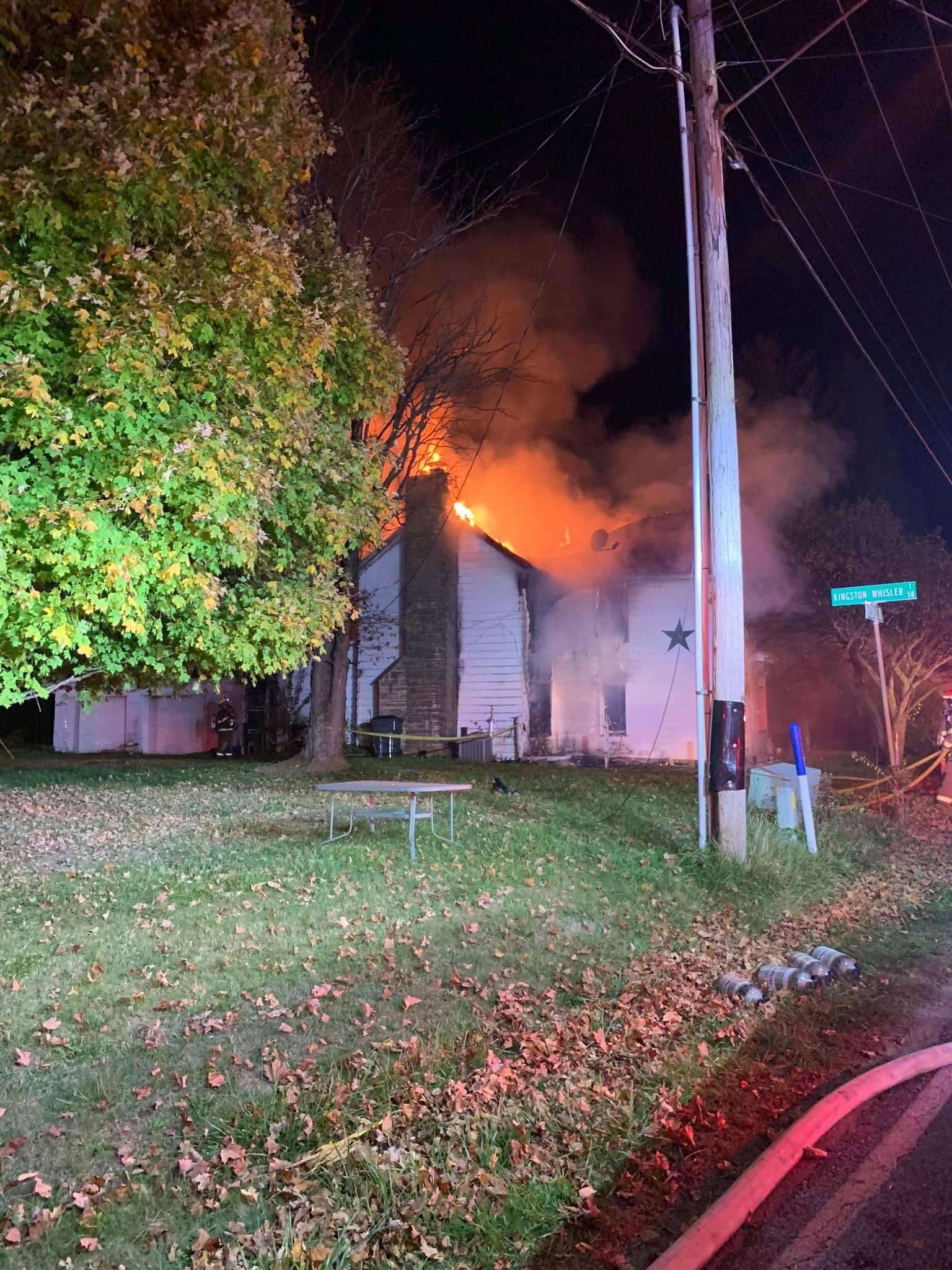 The home located at 11366 Hayesville road was fully ablaze when Saltcreek-Tarlton fire department arrived on the scene, and they immediately asked for mutual aid. Mutual aid from Pickaway Twp. Fire, Clearcreek Twp Fire, Laurelville Fire, Green Twp Fire, and Colerain Twp Fire came to aid in fighting the structure fire.