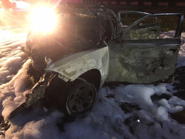 At approximately 2:40 a.m., a trooper was dispatched to locate a possible impaired driver reported to be in the area of milepost 155 on Interstate 71. The trooper was struck head-on by another vehicle traveling south in the north bound lanes. As a result of the crash, both vehicles caught fire.