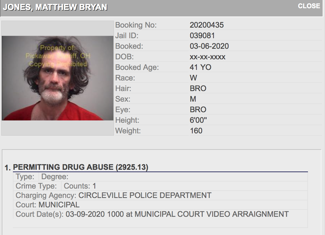 • Matthew Jones, 41 of Circleville, charged with Felony 3 Trafficking in Methamphetamine, Felony 3 Possession of Methamphetamine and Felony 5 Permitting Drug Abuse.