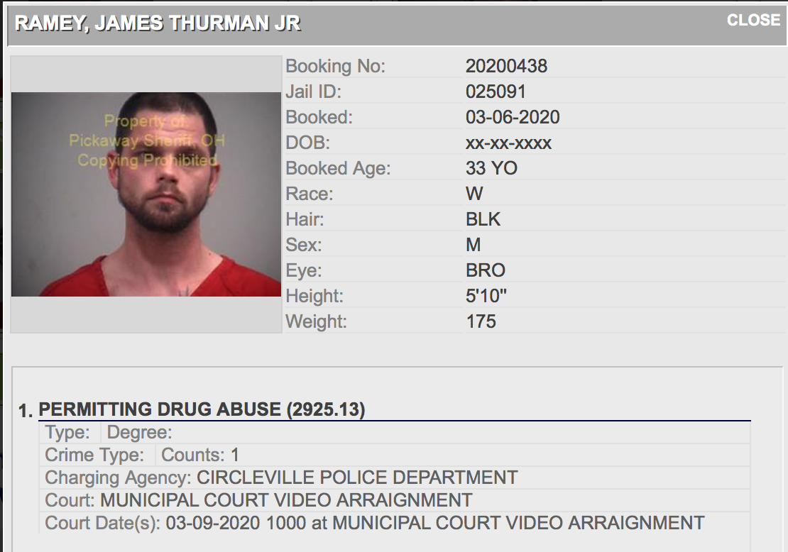 • James Ramey, 33 of Circleville, charged with Felony 3 Trafficking in Methamphetamine, Felony 3 Possession of Methamphetamine and Felony 5 Permitting Drug Abuse.