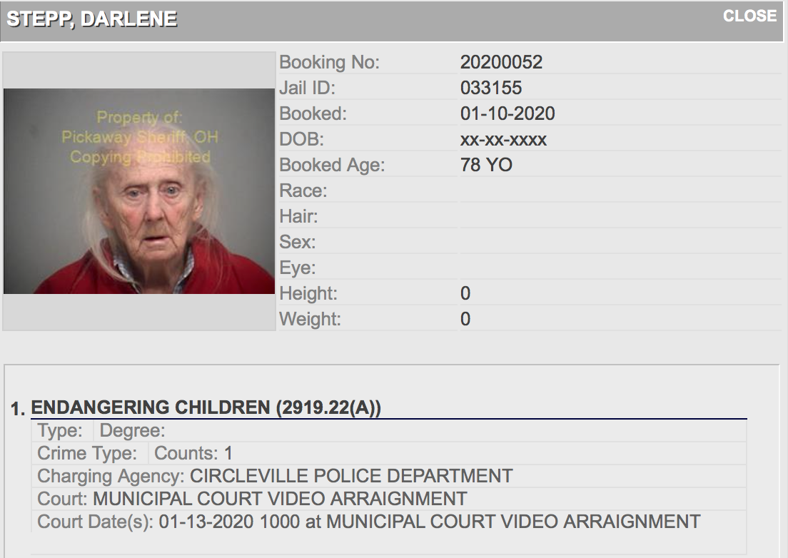 • Darlene Stepp 78 of Circleville charged with Child Endangering and Permitting Drug Abuse.
